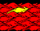 There's a history behind this piece of art. Bruce originally named it "Skippy", presumably in reference to the 1967 TV show of that name. He renamed it "Quantum Leap" as a joke response to another animated tessellation, "Quantum Dog", by renowned tessellation artist Makoto Nakamura. Mr. Bilney's original tessellation animation is shown above, in red; my simplified version is below.