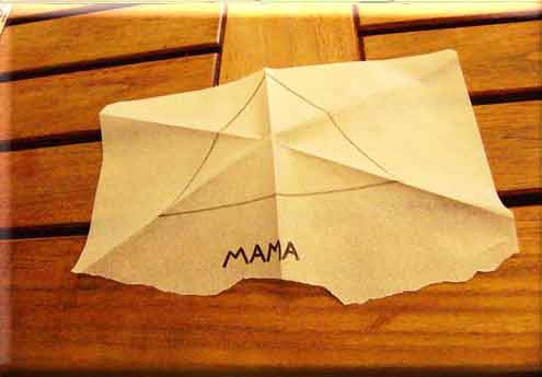 The paper called "mama" should now have 3 folds in it. The 3 folds should meet at the center of the triangle.