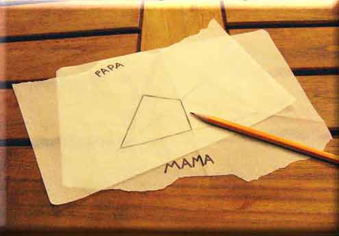Trace one "kite" shape from "mama" onto the paper called "papa".