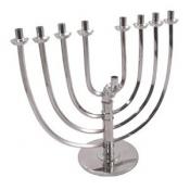 A classic hanukiah with one candle cup lower than the others. From ModernTribe.com